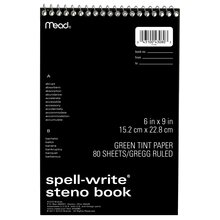 Mead® Spell-Write Wirebound Steno Book, 80 Sheets, Green Paper, 6" x 9"