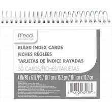 Mead Wirebound Ruled Index Cards, White, 4" x 6"